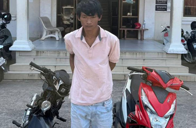ជនសង្ស័យដែលត្រូវសមត្ថកិច្ចចាប់ឃាត់ខ្លួន មានឈ្មោះ កប សុភា ហៅពៅ ភេទប្រុស អាយុ២២ឆ្នាំ មុខរបរនិងស្នាក់នៅមិនពិតប្រាកដ។ (មានសារធាតុញៀន)។ ចំណែកម៉ូតូដែលជនសង្ស័យលួច ម៉ាក HONDA BEAT ពណ៌សលាយក្រហម ពាក់ស្លាកលេខ ភ្នំពេញ 1HS-4193 ដែលមានលេខតួ 9015605 និងម៉ាស៊ីន 9015770 ជារបស់ជនរងគ្រោះឈ្មោះហ៊ឹម ស្រីណុច ភេទស្រី អាយុ២៣ឆ្នាំ មុខរបរបុគ្គលិកលក់កាហ្វេ ស្នាក់នៅផ្ទះជួល ភូមិ២ ផ្លូវបេតុង សង្កាត់ជ្រោយចង្វា ខណ្ឌជ្រោយចង្វា។