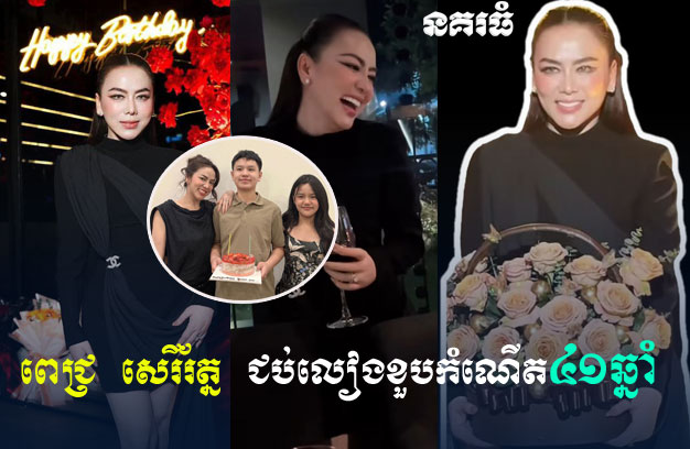 ភ្នំពេញ ៖ អតីតពិធីការិនី ពេជ្រ សេរីរ័ត្ន បានធ្វើពិធីជប់លៀងធំ ខួបកំណើតរបស់ខ្លួនគម្រប់៤១ឆ្នាំ នៅហាង Stone Grill កាលពីរាត្រីថ្ងៃទី២៥ វិច្ឆិកា និងហៅភ្ញៀវអ្នកជិតដិតប៉ុណ្ណោះចូលរួម ដូចជា លោកសាវិន ហ្វីលីព, នាយព្រែក, អ្នកនាងសារ៉ាយ សក្ខណា និងអ្នកលក់ឡេមួយចំនួន ។ ដូចឆ្នាំមុនដែរ ខួបកំណើតរបស់តារាកូនពីរ រូបនេះ ភ្ញៀវដែលចូលរួមទាំងអស់តម្រូវឲ្យស្លៀកសម្លៀកបំពាក់ឈុតពណ៌ខ្មៅ ព្រោះជាពណ៌ដែលម្ចាស់កម្មវិធីចូលចិត្ត ។ ប៉ុន្ដែនាយព្រែក ឆ្ងល់និងសួរទៅសេរីរ័ត្ន ថាម៉េចបានខួបឆ្នាំមុន (២០២៤) ថាគម្រប់៤២ឆ្នាំ ហើយឥឡូវបែរជាធ្វើខួបគម្រប់៤១ឆ្នាំអីចឹង? ធ្វើខួបបន្ថយអាយុមែន? សេរីរ័ត្ន បានត្រឹមសើចសប្បាយ ដៃកាន់កែវស្រា និងប្រាប់ទៅនាយព្រែក និងលោកសាវិន ហ្វីលីព ថានាងធ្វើខួបបែបនេះ លើកទី២ ហើយ ប៉ុន្ដែមិនប្រាប់អាយុពិតទេ ។