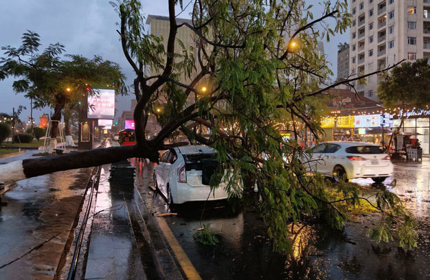 ភ្នំពេញ ៖ ភ្លៀងមួយមេ បានធ្លាក់គ្របដណ្តប់ស្ទើរទូទាំងរាជធានីភ្នំពេញ ស្របពេលនោះ មានខ្យល់កន្ត្រាក់ បោកបក់ធ្វើឱ្យរលំដើមក្ងោក ១ដើម សង្កត់រថយន្ត ១គ្រឿង ដែលម្ចាស់ចតឈប់ហាត់ប្រាណ បណ្តាលឱ្យខូចខាតធ្ងន់ តែសំណាងល្អ មិនបង្កឱ្យមនុស្សណាម្នាក់ រងគ្រោះថ្នាក់ឡើយ។