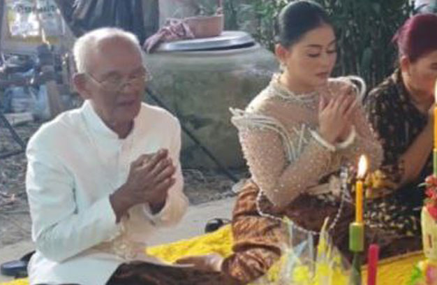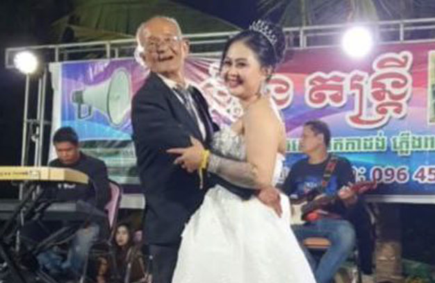 ខេត្តបាត់ដំបង ៖ ពិធីរៀបការគូស្វាមីភរិយាថ្មោងថ្មីមួយគូ កំពុងធ្វើឱ្យមហាជន ផ្ទុះការចាប់អារម្មណ៍ កក្រើក ពេញបណ្តាញសង្គម បន្ទាប់ពីបានឃើញសាមីខ្លួនកូនកំលោះ មានវ័យដល់ទៅ៧៩ឆ្នាំ ទៅហើយ បែរជាមានសំណាងដឹកដៃកូនក្រមុំវ័យក្មេង ដ៏ស្រស់ស្អាតទ្រលុកទ្រលន់ ចូលរោងការ យ៉ាងអធិកអធម ក្រោមស្នាមញញឹមបិទមាត់មិនជិត ធ្វើឱ្យមានទាំងអ្នកចំអែចំអន់ និងអ្នកលួចច្រណែន។