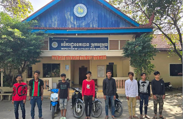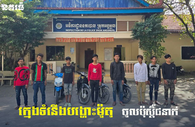 ខេត្តកណ្តាល ៖ មន្ត្រីនគរបាលនៃអធិការដ្ឋាននគរបាលស្រុកអង្គស្នួល បានឱ្យដឹងកាលពីព្រឹកថ្ងៃទី១០ ខែធ្នូ ឆ្នាំ២០២៥ ថា សមត្ថកិច្ចស្រុកអង្គស្នួល បានបើកប្រតិបត្តិការបង្ក្រាបមុខសញ្ញាក្មេងទំនើងបង្ហោះម៉ូតូ ឃាត់ខ្លួនបានចំនួន៨នាក់។
