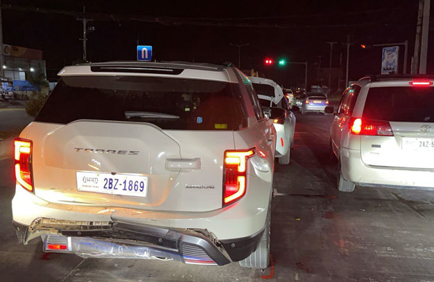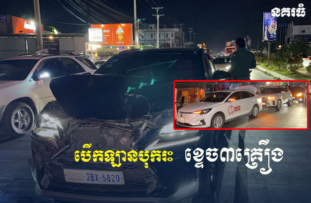 ភ្នំពេញ ៖ រថយន្ត ១គ្រឿង បើកបរក្នុងល្បឿនលឿន ខ្វះការប្រុងប្រយ័ត្ន ជ្រុលទៅបុករថយន្តបន្តកន្ទុយគ្នា ចំនួន២គ្រឿង ដែលកំពុងឈប់រង់ចាំភ្លើងស្តុប បណ្តាលឱ្យរងការខូចខាត តែមិនបណ្តាលឱ្យមនុស្សណាម្នាក់រងរបួសនោះទេ។