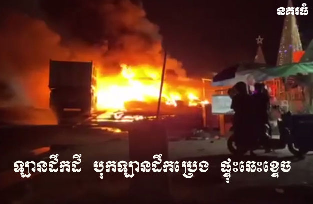 ឡានដឹកដី បុកឡានដឹកប្រេង ផ្ទុះឆេះខ្ទេច