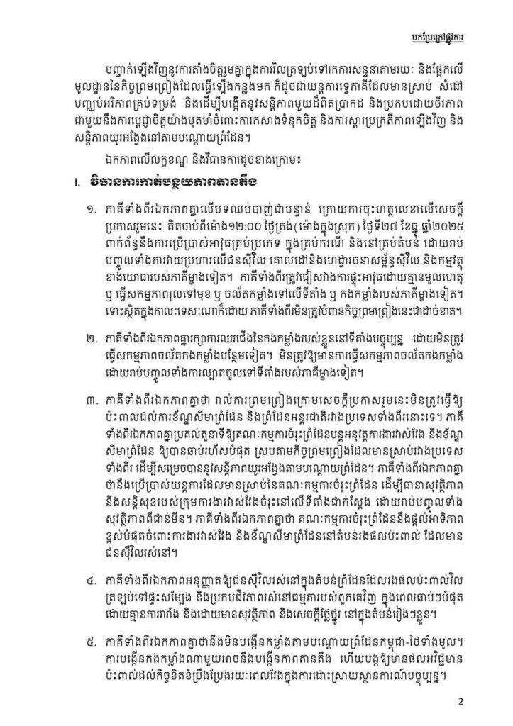 Homeព័ត៌មានជាតិកិច្ចប្រជុំពិសេស GBC កម្ពុជា-ថៃ ឯកភាពលក្ខខណ្ឌ១៦ អនុវត្តបទឈប់បាញ់ ចាប់ពីម៉ោង១២ថ្ងៃត្រង់ ថ្ងៃ២៧ ធ្នូ ២០២៥