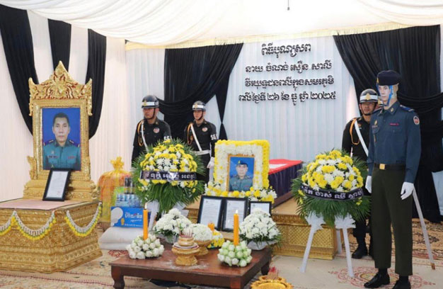 ភ្នំពេញ ៖ រូបភាពសាកសពវីរកងទ័ពជួរមុខ១រូប ដែលបានពលីក្នុងសមរភូមិ និងត្រូវបានទាហានថៃ២នាក់ ចងដៃចាប់អូសសព រួចថត បង្ហោះពេញបណ្តាញសង្គម បានធ្វើឱ្យមហាជនអ្នកប្រើប្រាស់បណ្តាញសង្គម ពិសេសក្រុមគ្រួសារសព មានការតក់ស្លុតរន្ធត់ចិត្ត ឈឺចាប់ហួស ប្រមាណ ដោយក្នុងនោះ កូនស្រីវីរកងទ័ពពលីខាងលើ បានប្រកាសថ្កោលទោសយ៉ាងខ្លាំង ចំពោះទាហានសៀមឈ្លានពាន ដែលបានប្រព្រឹត្តទង្វើ មកលើឪពុក ជាទីស្រលាញ់របស់នាង ដែលស្ម័គ្រចិត្តទៅឈរជើងប្រយុទ្ធជាមួយខ្មាំងសត្រូវដោយមិនរារែកចិត្ត រហូតលះបង់សាច់ស្រស់ ឈាម ស្រស់ដើម្បីជាតិមាតុភូមិ។