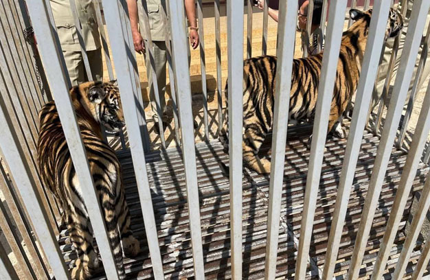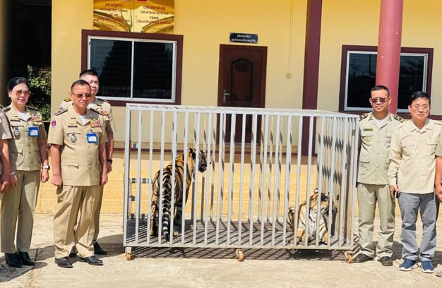 ខេត្តមណ្ឌលគិរី ៖ សត្វខ្លាដំបង ចំនួន២ក្បាល ដែលត្រូវបានទិញមកពីបរទេស ចិញ្ចឹមតាំងពីតូច លុះកាន់តែធំឡើង ម្ចាស់មានការព្រួយបារម្ភពីសុវត្ថិភាព ក៏សម្រេចចិត្តប្រគល់ជូនសមត្ថកិច្ច ដើម្បីប្រគល់បន្តទៅមន្ត្រីជំនាញ បញ្ជូនទៅកាន់សួនសត្វភ្នំតាម៉ៅ ដើម្បីមើលថែបន្ត។