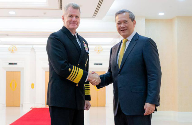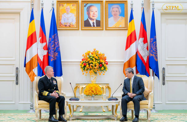 ភ្នំពេញ ៖ នៅព្រឹកថ្ងៃចន្ទ ទី២៦ ខែមករា ឆ្នាំ២០២៦ សម្តេច ហ៊ុន ម៉ាណែត នាយករដ្ឋមន្ត្រី នៃព្រះរាជាណាចក្រកម្ពុជា បានអនុញ្ញាតឱ្យនាយឧត្តមនាវី សាមូអែល ប៉ាប៉ារ៉ូ (Samuel Paparo) មេបញ្ជាការ នៃបញ្ជាការដ្ឋានឥណ្ឌូ-ប៉ាស៊ីហ្វិក នៃកងទ័ពជើងទឹកអាមេរិក ជួបសម្តែងការគួរសមនិងពិភាក្សាការងារ នៅវិមានសន្តិភាព។នាយឧត្តមនាវី Samuel Paparo បំពេញទស្សនកិច្ចនៅកម្ពុជា ស្របពេលជាមួយនឹងនាវាចម្បាំងអាមេរិក ចូលមកចតនៅមូលដ្ឋានសមុទ្ររាម របស់កម្ពុជា ដើម្បីលើកកម្ពស់ទំនាក់ទំនងនិងកិច្ចសហប្រតិបត្តិការរវាងកងទ័ពជើងទឹកកម្ពុជា និងសហរដ្ឋអាមេរិក។