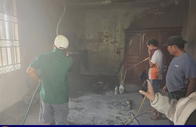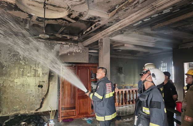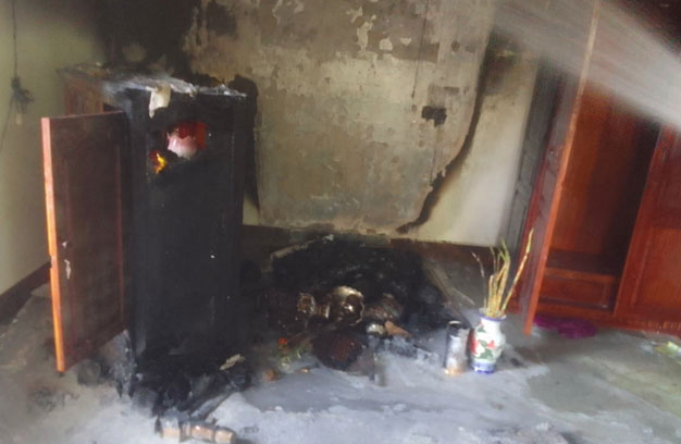 ភ្នំពេញ ៖ អតីតមេភូមិម្នាក់ បានអុជធូបលើអាសនៈ សែនថ្ងៃសីល ស្រាប់តែបង្កជាអណ្តាតភ្លើង ឆាបឆេះផ្ទះវីឡា ជាន់ទី១ យ៉ាងសន្ធោសន្ធៅ បណ្តាលឱ្យឆេះខូចខាតអាសនៈ រួមនិងសម្ភារៈមួយចំនួន ត្រូវបានសមត្ថកិច្ចជំនាញ បញ្ជូនរថយន្តពន្លត់អគ្គិភ័យ ចេញអន្តរាគមន៍បាញ់ទឹកពន្លត់ អស់១រថយន្ត ទើបភ្លើងបានរលត់ទៅវិញទាំងស្រុង។