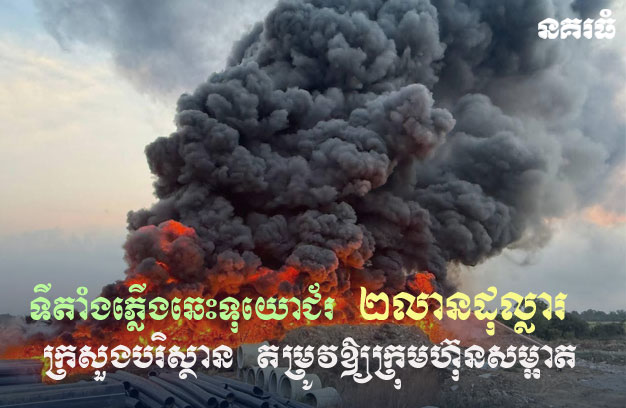 ទីតាំងភ្លើងឆេះទុយោជ័រ ២លានដុល្លារ ក្រសួងបរិស្ថាន តម្រូវឱ្យក្រុមហ៊ុនសម្អាត