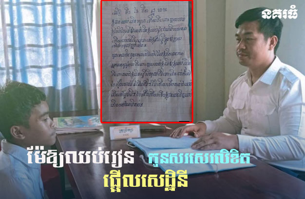 ចំពោះសំណេរក្នុងលិខិតរបស់ក្មេងប្រុសរូបនោះ មានខ្លឹមសារទាំងស្រុងថា “នៅថ្ងៃទី៥ ខែមីនា ឆ្នាំ២០២៦ ខ្ញុំបានឈប់រៀនរហូតហើយ ពីព្រោះម្តាយរបស់ខ្ញុំ តែងតែងចង់ឱ្យឈប់រៀន ខ្ញុំឈប់ដូចបំណងរបស់គាត់ហើយ ចាប់ តាំងពីពេលនេះទៅ ខ្ញុំនឹងធ្វើខ្លួនឱ្យក្លាយជាមនុស្សម្នាក់ ទៀត។ សូមទោសប៊ិក សូមទោសសៀវភៅ ដែលខ្ញុំមិនអាចកាន់អ្នកបានយូរដូចគេ ពីព្រោះម្តាយរបស់ខ្ញុំ ចង់ឱ្យខ្ញុំឈប់រៀន ពីព្រោះគាត់ថា រៀនធ្វើអី មនុស្សចឹង ទោះ រៀនចប់ ក៏នៅតែឥតប្រយោជន៍ដដែលហ្នឹង។ ចឹងហើយ ទើបគាត់ថា ឈប់រៀនទៅល្អជាង។ បែបហ្នឹងហើយ ទើបខ្ញុំសម្រេចចិត្តឈប់រៀន តាមបំណងគាត់…”។