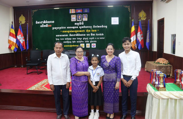 ភ្នំពេញ ៖ នាព្រឹកថ្ងៃទី១០ ខែមីនា ឆ្នាំ២០២៦ លោកបណ្ឌិត ហង់ជួន ណារ៉ុន ឧបនាយករដ្ឋមន្ត្រី រដ្ឋមន្ត្រីក្រសួងអប់រំ យុវជននិងកីឡា បានអញ្ជើញជាអធិបតីក្នុងពិធីបិទនិងប្រកាសលទ្ធផលការប្រកួតប្រជែង អានអត្ថបទ ស្មូតកំណាព្យ និងតែងនិពន្ធ «ពានរង្វាន់សម្តេចតេជោ ហ៊ុន សែន» នៃទិវាជាតិអំណាន ១១មីនា ២០២៦ និងមានការចូលរួមពីសំណាក់ លោក លោកស្រី ថ្នាក់ដឹកនាំក្រសួងអប់រំ យុវជននិងកីឡា តំណាងក្រសួងស្ថាប័នពាក់ព័ន្ធ សាស្រ្តាចារ្យសាលាមធ្យមសិក្សាវិចិត្រសិល្បៈ ប្រធានសមាគមសិល្បៈបុរាណខ្មែរ ថ្នាក់ដឹកនាំមន្ទីរ មាតាបិតាអ្នកអាណាព្យាបាល និងបេក្ខជនជ័យលាភី មកពី ២៥រាជធានី-ខេត្ត។