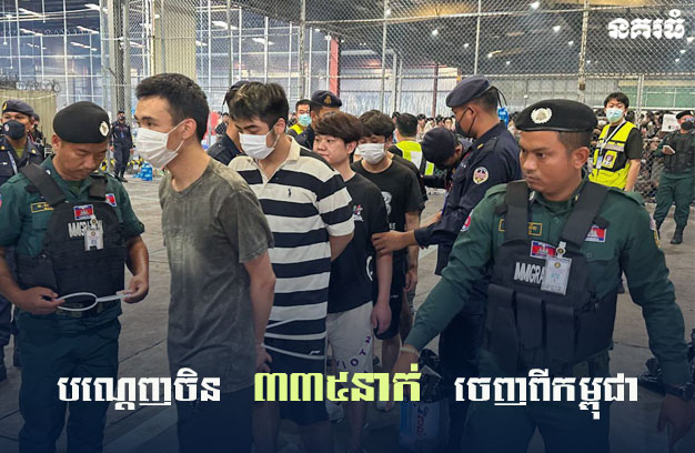 ភ្នំពេញ ៖ ជនជាតិចិន ចំនួន៣៣៥នាក់ ពាក់ព័ន្ធករណីឆបោកតាមប្រព័ន្ធអនឡាញ (Online Scams) និងករណីលួចស្នាក់នៅ ធ្វើការងារខុសច្បាប់ ត្រូវបានបណ្តេញចេញពីព្រះរាជាណាចក្រកម្ពុជា។
