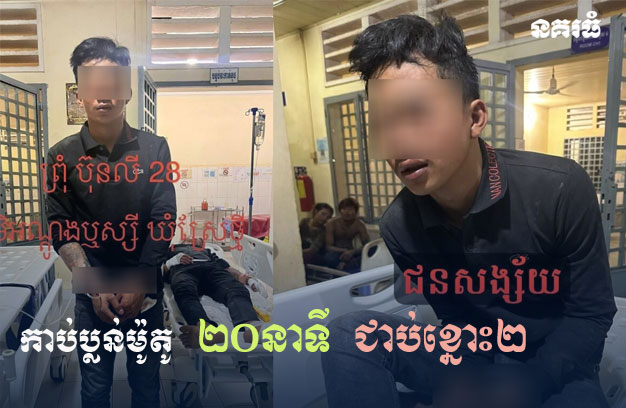 ខេត្តកំពង់ឆ្នាំង ៖ ជនសង្ស័យចំនួន២នាក់ បានធ្វើសកម្មភាព កាប់ប្លន់ម៉ូតូពីជនរងគ្រោះម្នាក់បានសម្រេច រួចនាំគ្នាជិះរត់គេចខ្លួន បានត្រឹមតែ២០នាទី ក៏ត្រូវកម្លាំងសមត្ថកិច្ចជំនាញស្ទាក់បង្ក្រាប ធ្វើឱ្យជនសង្ស័យភ័យខ្លួន ផ្តួលម៉ូតូរត់គេច តែត្រូវប្រជាពលរដ្ឋ និងកម្លាំងសមត្ថកិច្ចប្រដេញឃាត់ខ្លួនបានជនសង្ស័យ ទាំង២នាក់ នាំយកមកចាត់ការតាមច្បាប់។