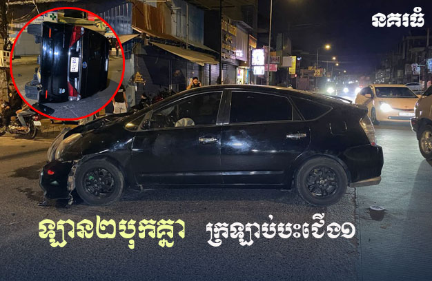 ភ្នំពេញៈ បុរសម្នាក់ បើករថយន្ត ១គ្រឿង ក្នុងល្បឿនលឿន រួចជ្រុលទៅបុករថយន្តទំនើប ១គ្រឿង ពេញទំហឹង នៅចំណុចផ្លូវបំបែកជាបួន បណ្តាលឱ្យរថយន្តទំនើបក្រឡាប់បះជើង សំណាងល្អ មិនបង្កឱ្យមនុស្សណាម្នាក់រងរបួសធ្ងន់ឡើយ។
