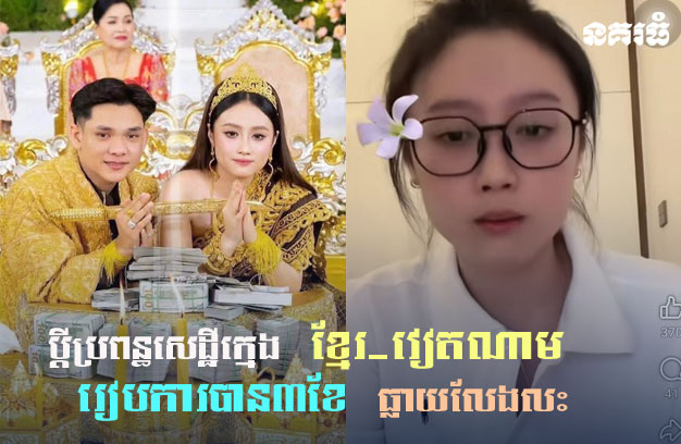 ភ្នំពេញ ៖ ប្តីប្រពន្ធសេដ្ឋីវ័យក្មេង ខ្មែរ-វៀតណាម ដែលថ្ងៃមង្គលការ ទទួលបានកាដូ (ចំណងដៃ) ពីឪពុកម្តាយទាំងសងខាង គិតជាទឹកប្រាក់ រាប់លានដុល្លារ ជាមួយនិងកម្មវិធីមង្គលការដែលរៀបចំឡើងយ៉ាងប្រណីត ផ្អើលកក្រើក ២ប្រទេស ស្រាប់តែរួមរស់បានត្រឹម ៣ខែ ក៏ឈានដល់ការបែកបាក់ លែងលះគ្នា ដោយភាគីកូនក្រមុំវៀតណាម រូបស្រស់ នាងង្វៀន ធីយៀន បានប្រកាសចែកផ្លូវជាមួយប្តីខ្មែរ និងទម្លាយពីមូលហេតុថា បញ្ហាវប្បធម៌ ភាសា និងទស្សនៈរស់នៅ គឺជាឧបសគ្គធំដែលធ្វើឱ្យពួកគេមិនអាចបន្តរួមរស់បានយូរអង្វែង។មហាជនអ្នកប្រើប្រាស់បណ្តាញសង្គម បានសម្តែងនូវការភ្ញាក់ផ្អើលយ៉ាងខ្លាំង នៅថ្ងៃទី២៨ ខែមេសា ឆ្នាំ២០២៦ ក្រោយពីទទួលបានដំណឹងថា គូស្នេហ៍សេដ្ឋីវ័យក្មេង ខ្មែរ-វៀតណាម ដ៏ល្បីល្បាញ ផ្អើលពិភពអនឡាញ ពេលនេះបានសម្រេចចិត្តចែកផ្លូវគ្នាហើយ។