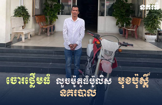 ភ្នំពេញ ៖ នគរបាលព្រហ្មទណ្ឌ នៃអគ្គស្នងការដ្ឋាននគរបាលជាតិ ក្រសួងមហាផ្ទៃ បានឃាត់ខ្លួនជនសង្ស័យម្នាក់ ដែលថ្លើមធំ ធ្វើសកម្មភាពលួចម៉ូតូធំរបស់ប៉ូលិស ដែលទុកនៅចំណុចមុខប៉ុស្តិ៍នគរបាលរដ្ឋបាលវត្តភ្នំ ក្នុងភូមិសាស្ត្រខណ្ឌដូនពេញ ។