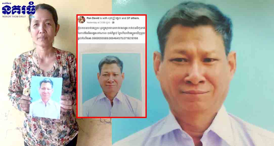 ជាមួយនេះ ក្រុមគ្រួសារបុរសរងគ្រោះខាងលើ បានអំពាវនាវដល់បងប្អូនប្រជាពលរដ្ធខ្មែរ ដែលបានប្រទះឃើញបុរសដែលមានភិនភាគដូចក្នុងរូបថតខាងលើ សូមជួយផ្តល់ដំណឹងនេះមកក្រុមគ្រួសារតាមរយៈលេខទូរស័ព្ទ ០៩៦ ៨ ៩៩៩ ៨០៩ ឬមួយក៏អាចរាយការណ៍ទៅកាន់សមត្ថកិច្ចដែលនៅជិតបំផុត៕