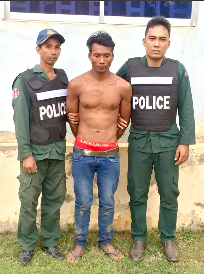 ខេត្តពោធិ៍សាត់ ៖ ជនសង្ស័យម្នាក់ដែលបានផឹកស៊ីស្រវឹង ផ្ទុះជម្លោះជាមួយនឹងបុរសចំណាស់ម្នាក់ រហូតដល់ទប់ចិត្តមិនបាន ទាញដំបងគប់សំដៅគូទំនាស់ តែបែរជាជ្រុលទៅចំស្ត្រីចំណាស់ប្រពន្ធ បណ្តាលឱ្យស្លាប់ កាលពីយប់ថ្ងៃទី២៨ ខែឧសភា ឆ្នាំ២០១៨ នៅចំណុចភូមិអូរស្រាវ ឃុំព្រងិល ស្រុកភ្នំក្រវាញ ត្រូវបានសមត្ថកិច្ចស្រាវជ្រាវចាប់ឃាត់ខ្លួន បានកាលពីវេលាម៉ោង៥និង១៣នាទីល្ងាច ថ្ងៃទី២៩ ខែឧសភា ឆ្នាំ២០១៨ នៅចំណុចផ្លូវលេខ៥៥ ភូមិអូរឫស្សី ឃុំបាក់ចិញ្ចៀន ស្រុកភ្នំក្រវាញ។