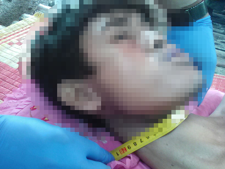 ក្រោយកើតហេតុ សមត្ថកិច្ចជំនាញ បានចុះពិនិត្យនិងធ្វើកោសល្យវិច័យសព រួចបញ្ជាក់ថា នៅផ្នែកកខាងមុខមានស្នាមទ្រុឌ ដោយខ្សែអង្រឹងប្រវែង20សង់ទីម៉ែត្រ ចាប់ពីក្រោមទងត្រចៀកខាងឆ្វេងដល់ក្រោមទងត្រចៀកស្តាំ ក្រៅពីនោះគ្មានស្លាកស្នាមអ្វីទេ។