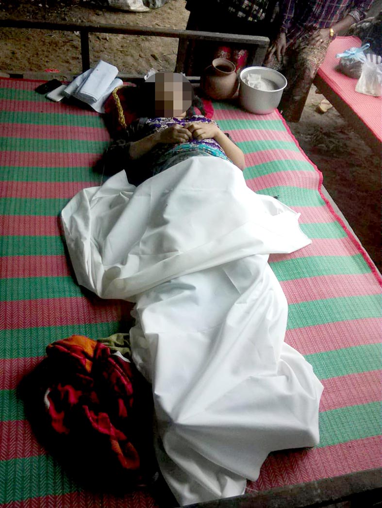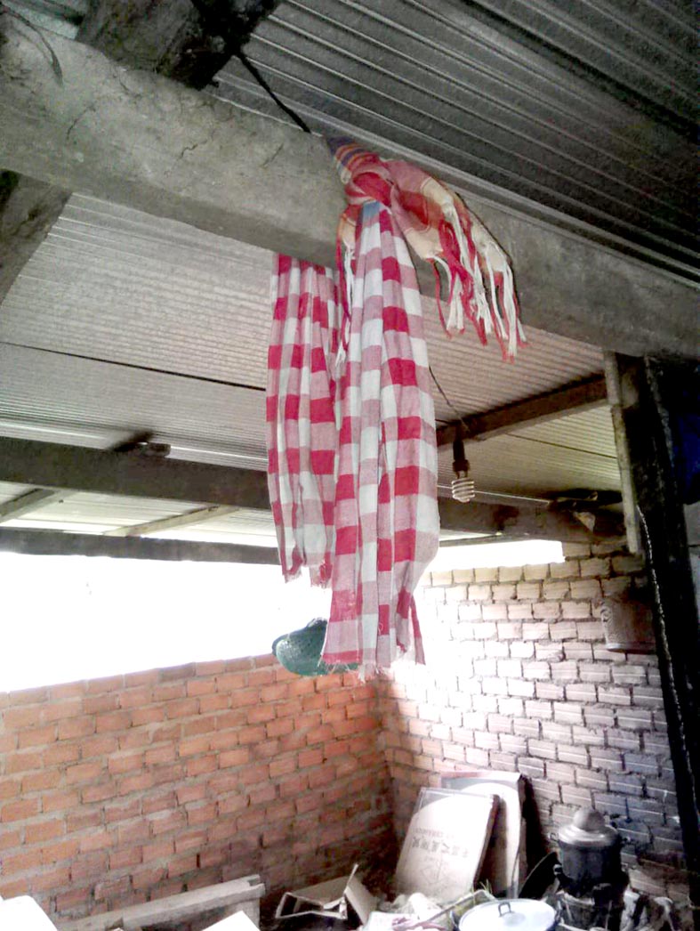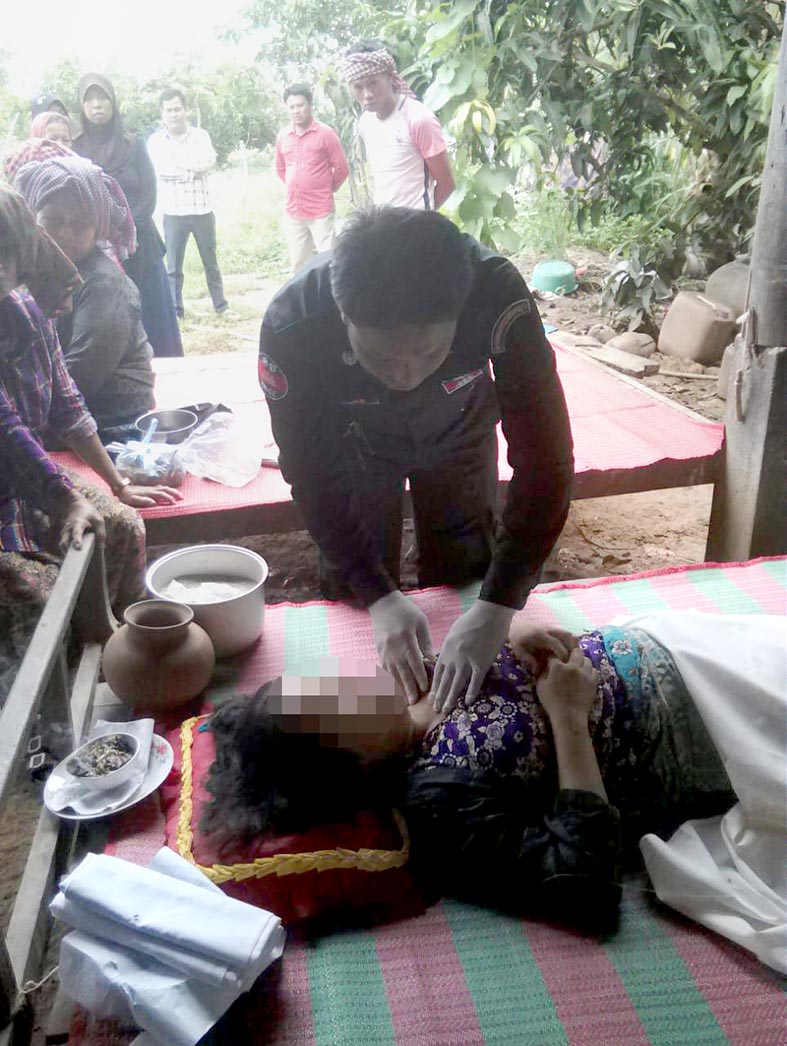 ស្ត្រីរងគ្រោះដែលតូចចិត្តរឿងម៉ែចេះតែជេរស្តី បែរជាដាច់ចិត្តចងកធ្វើអត្តឃាតចោលកូនតូច ទើបនឹងសម្រាលនោះ មានឈ្មោះហ ប៉េះ អាយុ៣៣ឆ្នាំ មុខរបរនៅផ្ទះ មានលំនៅក្នុងភូមិកើតហេតុខាងលើ។
