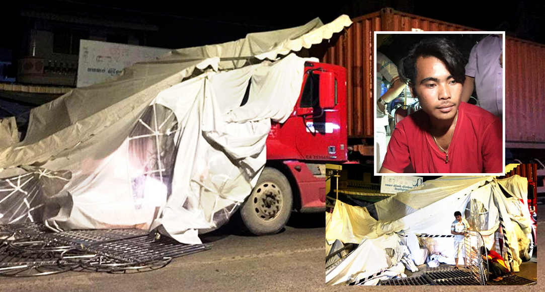 រថយន្តបង្កដែលបុកទម្លុះរោងបុណ្យ៧ថ្ងៃទាំងកណ្តាលអធ្រាត្រ ជាប្រភេទរថយន្តកុងតឺន័រ ពណ៌ក្រហម ពាក់ស្លាកលេខភ្នំពេញ 3D-9332 បើកបរដោយយុវជនម្នាក់ឈ្មោះសែម វីរៈបុត្រ អាយុ២៥ឆ្នាំ មុខរបរបើករថយន្ត ស្នាក់នៅស្រុកកៀនស្វាយ ខេត្តកណ្តាល (ឃាត់ខ្លួន)។