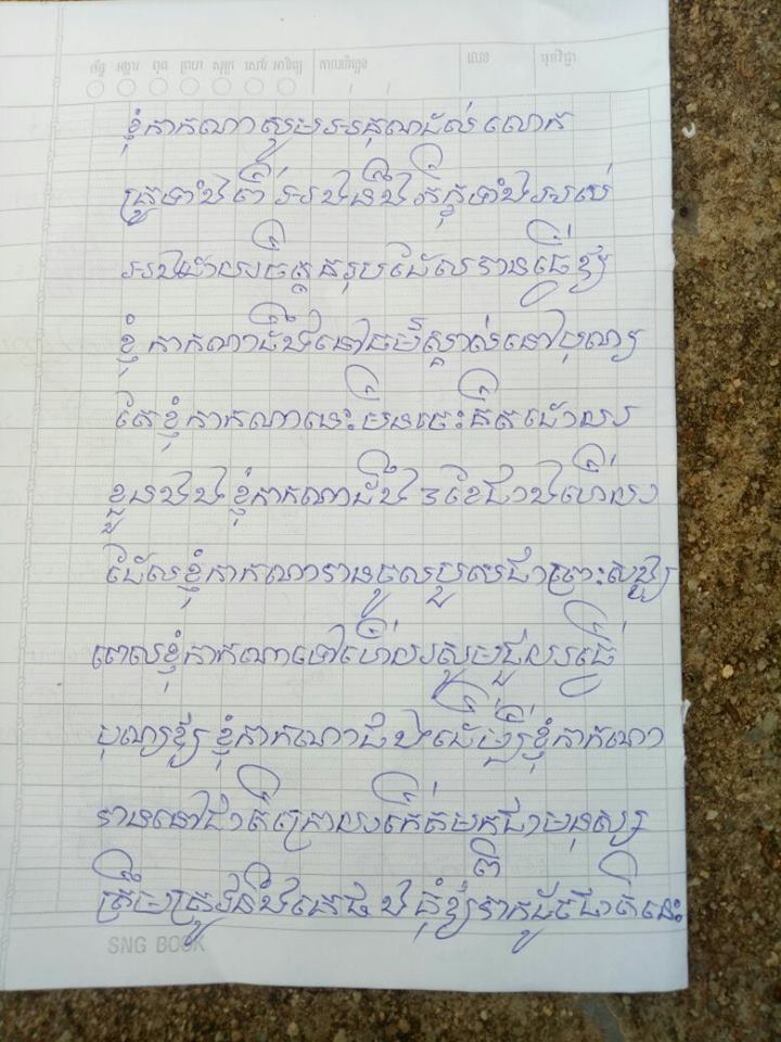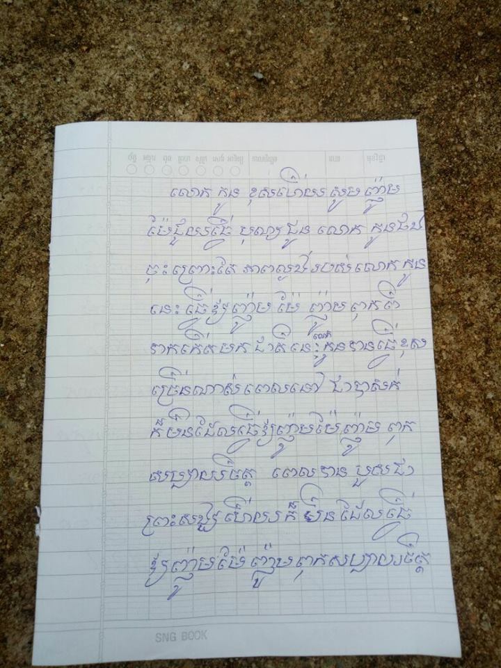 នៅក្នុងលិខិតបណ្តាំទាំង៥សន្លឹក មានខ្លឹមសារទាំងស្រុងថា “ថ្ងៃទី២០ ខែ០៤ ឆ្នាំ២០១៨ គឺជាថ្ងៃដែលអាត្មា បានចូលបួសជាព្រះសង្ឃរួចហើយ អាត្មាបានសម្រេចចិត្តថ្វាយខ្លួនដល់ព្រះ នៅថ្ងៃទី២៤ ខែ០៤ ឆ្នាំ២០១៨ រហូតតទៅដល់ថ្ងៃអាត្មាអស់ជីវិតទៅ ពីអាត្មា ម៉េងជូ។ ពេលវេលាជាមាសប្រាក់ មានតម្លៃណាស់សម្រាប់មនុស្សយើងម្នាក់ៗ ត្រូវខំធ្វើល្អឱ្យច្រើន ទើបជួបតែរឿងល្អមកវិញ។ ខ្ញុំករុណាសូមអរគុណដល់លោកគ្រូទាំងពីរអង្គ និងភិក្ខុទាំងអស់អង្គ ដោយចិត្តគោរពដែលបានធ្វើឱ្យខ្ញុំករុណាដឹងនូវធម៌ ស្គាល់នូវបុណ្យ តែខ្ញុំករុណានេះ មិនចេះគិតដោយខ្លួនឯង ខ្ញុំករុណាដឹង ២ខែជាងហើយ ដែលខ្ញុំករុណាបានចូលបួសជាព្រះសង្ឃ ពេលខ្ញុំករុណាទៅហើយ សូមជួយធ្វើបុណ្យឱ្យខ្ញុំករុណាផង ដើម្បីខ្ញុំករុណា បាននៅជាតិក្រោយ កើតមកជាមនុស្សត្រឹមត្រូវនឹងគេផង កុំឱ្យពិបាកដូចជាតិនេះ។ លោកកូនខុសហើយ សូមញោមម៉ែ ជួយធ្វើបុណ្យជូនលោកកូនផងចុះ ព្រោះតែភាពល្ងង់របស់លោកកូននេះ ធ្វើឱ្យញោមម៉ែញោមពុកពិបាក កើតមកជាតិនេះ លោកកូនបានធ្វើខុសច្រើនណាស់ ពេលនៅជាឧបាសក ក៏មិនដែលធ្វើឱ្យញោមម៉ែញោមពុកសប្បាយចិត្ត ពេលបានបួសជាព្រះសង្ឃហើយ ក៏មិនដែលធ្វើឱ្យញោមមែញោមពុកសប្បាយចិត្ត លោកកូនម្នាក់នេះ ចង់ឃើញញោមទាំងពីរសប្បាយចិត្តណាស់ តែលោកកូននេះមិនទាន់អាចធ្វើបាន ព្រោះតែលោកកូនរៀនធម៌មិនចេះមិនដឹងនូវវិន័យធម៌ មិនដឹងនូវវិន័យសង្ឃ ពេលនេះលោកកូនម្នាក់នេះដឹងខុសហើយ លោកកូនគ្មានអ្វីសងគុណញោមម៉ែញោមពុកវិញនោះទេ អ្វីដែលលោកកូនធ្វើបាន លោកកូនធ្វើបានតែប៉ុណ្ណឹងឯង លោកកូនមានតែសូមអភ័យទោស ដែលធ្វើឱ្យញោមទាំងពីរសប្បាយចិត្តមិនបាន លោកកូនម្នាក់នេះ សង្ឃឹមថា អត់ពីលោកកូននេះទៅ ញោមម៉ែញោមពុក ទាំងអស់គ្នានឹងសប្បាយចិត្តតទៅ រហូតឈប់ពិបាកចិត្តទៀតទៅ លោកកូនខុសហើយ ដែលមិនអាចឱ្យនូវសេចក្តីសុខក្នុងគ្រួសារបាន លោកកូនម្នាក់នេះសុំលាញោមទាំងពីរទៅហើយ…”។
