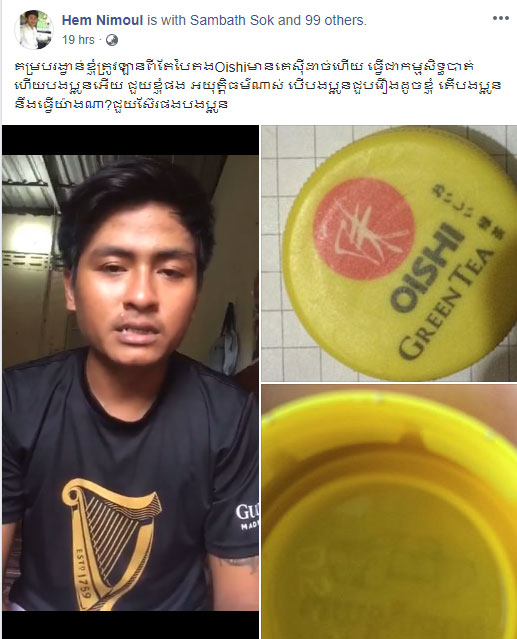គួរបញ្ជាក់ថា កាលពីថ្ងៃទី១១ ខែមិថុនា ឆ្នាំ២០១៨ ម្ចាស់គណនីហ្វេសប៊ុកឈ្មោះ Hem Nimoul បានបង្ហោះសារមួយថា “គម្របរង្វាន់ ខ្ញុំត្រូវឡានពីតែបៃតង Oishi មានគេស៊ីដាច់ហើយ ធ្វើជាកម្មសិទ្ធិបាត់ហើយបងប្អូនអើយ ជួយខ្ញុំផង អយុត្តិធម៌ណាស់ បើបងប្អូនជួបរឿងដូចខ្ញុំ តើបងប្អូននឹងធ្វើយ៉ាងណា? ជួយស៊ែរផងបងប្អូន…”។