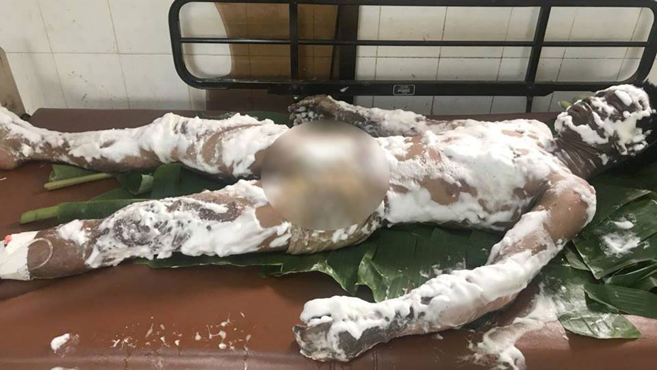 បុរសរងគ្រោះដែលត្រូវស៊ីទែនសាំងផ្ទុះឆាបឆេះរលាកពេញខ្លួនរងរបួសយ៉ាងធ្ងន់ មានឈ្មោះហ៊ាក តុង ជាបុគ្គលិកក្រុមហ៊ុនសេងបូទុម។