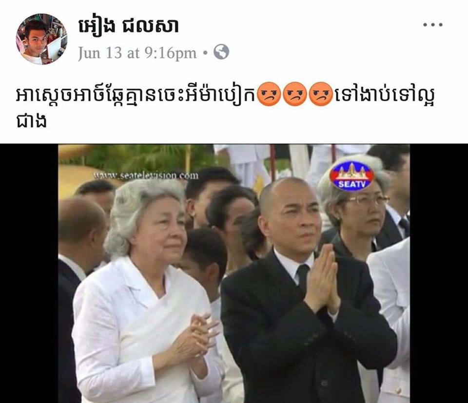 ជនសង្ស័យដែលប្រមាថលើព្រះមហាក្សត្រ និងត្រូវបានសមត្ថកិច្ចចាប់ឃាត់ខ្លួន មានឈ្មោះអៀង ជលសា អាយុ២៦ឆ្នាំ ប្រើប្រាស់គណនីហ្វេសប៊ុកឈ្មោះ “អៀង ជលសា”។ ជនសង្ស័យរូបនេះបានធ្វើសកម្មភាពបង្ហោះសារប្រមាថដល់អង្គព្រះមហាក្សត្រ កាលពីយប់ថ្ងៃទី១៣ ខែមិថុនា ឆ្នាំ២០១៨ កន្លងទៅ។