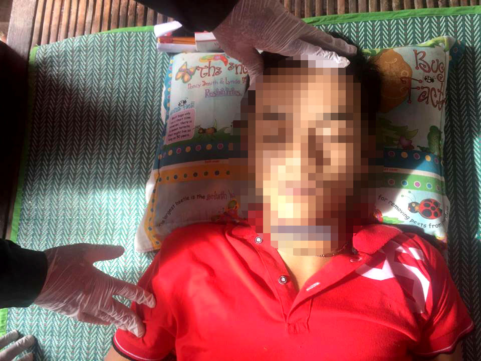 ក្រោយកើតហេតុ សមត្ថកិច្ចនគរបាលផ្នែកពិនិត្យហេតុស្រុកអង្គស្នួល បានចុះមកដល់កន្លែងកើតហេតុ ដោយចូលរួមពីលោកក្រុមប្រឹក្សា ឃុំ គ្រូពេទ្យ មេភូមិ នគរបាលប៉ុស្តិ៍ រួមនឹងឪពុកម្តាយបងប្អូនជនរងគ្រោះ បានធ្វើការពិនិត្យ រួចបញ្ជាក់ថា ជនរងគ្រោះពិតជាស្លាប់ដោយសារចងកប្រាកដមែន ដោយប្រើខ្សែគោប្រវែង៥ម៉ែត្រ ចងកភ្ជាប់នឹងធ្នឹមបន្ទប់ទឹក។