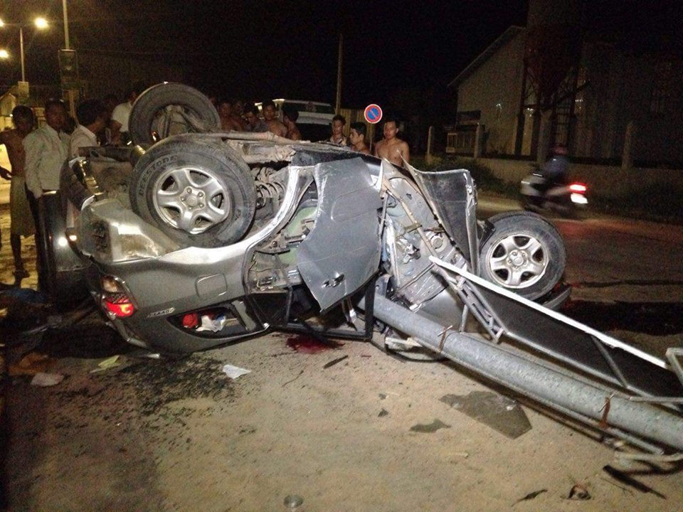 ភ្នំពេញ ៖ បុរសម្នាក់បានបើករថយន្តមួយគ្រឿង ក្នុងល្បឿនយ៉ាងលឿនដូចហោះ ស្រាប់តែអកុសល កង់ខាងក្រោយបានបែក ធ្វើឱ្យរថយន្តរេចង្កូតឡើងទៅលើខឿនសួនច្បារទ្រូងផ្លូវ ទៅបុករះបង្កោលភ្លើងបំភ្លឺផ្លូវ បណ្តាលឱ្យក្រឡាប់កៀបអ្នកបើកបរស្លាប់នៅក្នុងរថយន្ត យ៉ាងអាណោចអាធ័ម កាលពីវេលាម៉ោង១និង៣០នាទីរំលងអធ្រាត្រ ឈានចូលថ្ងៃទី០៤ ខែកក្កដា ឆ្នាំ២០១៨ នៅតាមបណ្តោយផ្លូវហាណូយ ត្រង់ចំណុចខាងជើងវត្តឃ្មួញ ប្រមាណ៥០០ម៉ែត្រ  ស្ថិតក្នុងសង្កាត់ឃ្មួញ ខណ្ឌសែនសុខ។