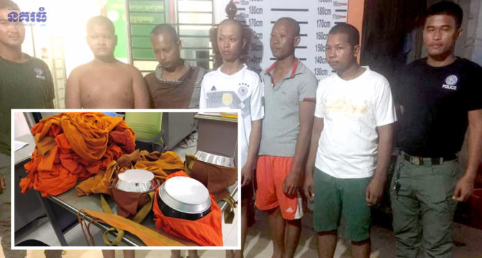 លោកវរសេនីយ៍ឯក ហួរ យ៉ៃ អធិការនគរបាលស្រុកព្រៃនប់ បានឲ្យដឹងថា សង្ឃក្លែងក្លាយ៥នាក់ ត្រូវបានសមត្ថកិច្ចចាប់ឃាត់ខ្លួន បន្ទាប់ពីដើរបិណ្ឌបាត្រយកបច្ច័យទៅទិញថ្នាំញៀន រួចនាំគ្នាទៅជក់ក្នុងផ្ទះសំណាក់ហ្វីលីតា។