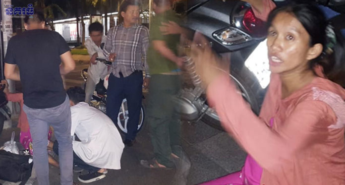 ភ្នំពេញ ៖ បុរសម្នាក់ជាជនជាតិចិន បានបើករថយន្តមួយគ្រឿង FORTUNER ពណ៌ស ពាក់ស្លាកលេខភ្នំពេញ 2AR-5493 មិនបានប្រុងប្រយ័ត្ន ក៏ជ្រុលទៅបុកពីគូទម៉ូតូមួយគ្រឿង ម៉ាកហុងដាស្កុបពី ពណ៌ខ្មៅ ពាក់ស្លាកលេខភ្នំពេញ 1HC-0874 បណ្តាលឱ្យស្ត្រីជាអ្នកបើកម៉ូតូកំពុងមានផ្ទៃពោះជិតគ្រប់ខែផង បានដួលរងរបួសរយះជើង សំណាងល្អមិនប៉ះពាល់ដល់ទារកក្នុងផ្ទៃ បានកើតឡើងកាលពីវេលាម៉ោង១និង១០នាទីរំលងអធ្រាត្រ ឈានចូលថ្ងៃទី១៤ ខែធ្នូ ឆ្នាំ២០១៨ តាមបណ្តោយផ្លូវព្រះមុនីវង្ស កែងផ្លូវភ្លោះ នៅចំណុចស្តុបកាណាឌីយ៉ា ស្ថិតនៅក្នុងសង្កាត់វត្តភ្នំ ខណ្ឌដូនពេញ។