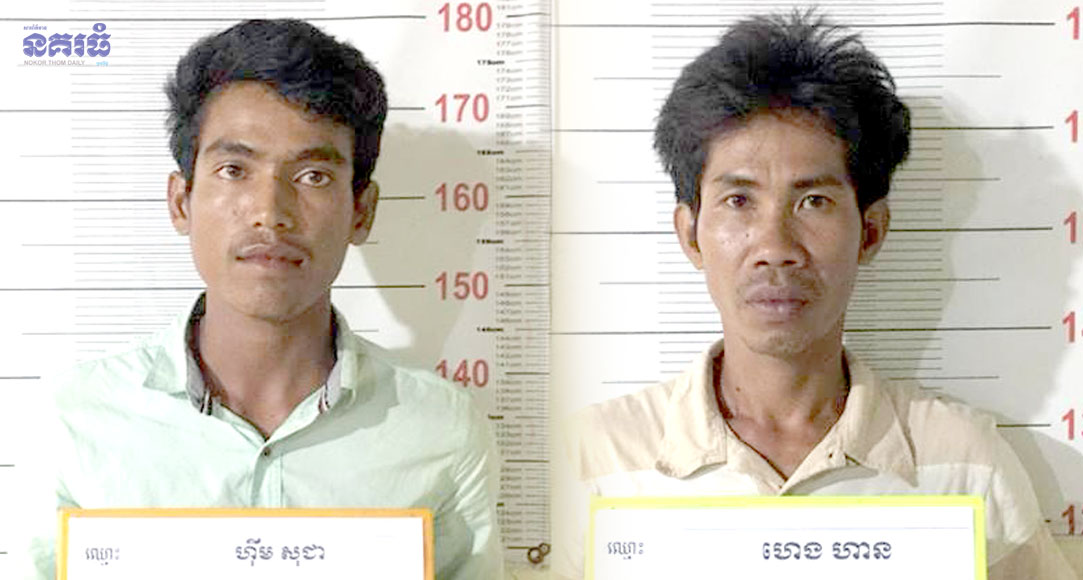 ចំណែកជនសង្ស័យដៃដល់ទាំង២នាក់ដែលត្រូវសមត្ថកិច្ចចាប់ឃាត់ខ្លួន រួមមាន ទី១-ឈ្មោះហេង ហាន ភេទប្រុស អាយុ៣៩ឆ្នាំ មុខរបរ ជាងសំណង់ មានលំនៅភូមិ តាកុក ឃុំនរា ស្រុកសង្កែ ខេត្តបាត់ដំបង និងទី២-ឈ្មោះហ៊ីម សុខជា ភេទប្រុស អាយុ២៣ឆ្នាំ មុខរបរកម្មករសំណង់ មានលំនៅភូមិសន្លុង ឃុំសន្លុង ស្រុកខ្សាច់កណ្តាល។