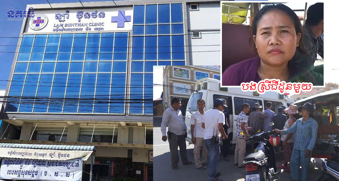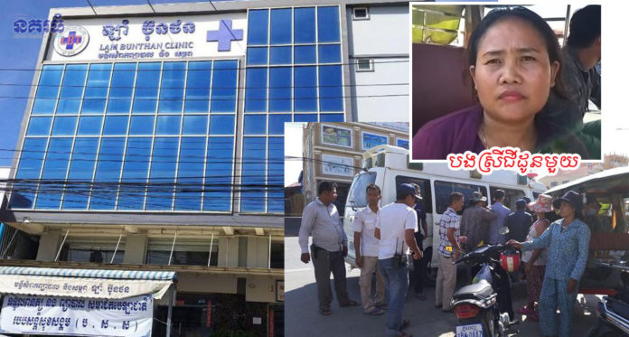 ភ្នំពេញ ៖ ស្ត្រីមានផ្ទៃពោះគ្រប់ខែម្នាក់ឈឺពោះសម្រាល ក៏ត្រូវក្រុមគ្រួសារប្រញាប់ដឹកបញ្ជូនទៅកាន់គ្លីនិកឯកជន ឡាំ ប៊ុនថន ដើម្បីឱ្យជួយវះកាត់សម្រាល លុះទៅដល់ ក៏ត្រូវក្រុមគ្រូពេទ្យតម្រូវឱ្យដេកចាំដុកទ័រខាងផ្នែកវះកាត់ អស់រយៈពេលជាច្រើនម៉ោង រហូតដល់ស្លាប់យ៉ាង អាណោចអាធ័មទាំងម្តាយនិងកូនក្នុងផ្ទៃ ជាហេតុធ្វើឱ្យក្រុមគ្រួសារ កើតទុក្ខមិនសុខចិត្ត លើកគ្នាមកតវ៉ាដល់មុខគ្លីនិក ឡាំ ប៊ុនថន បំណងទាមទាររកយុត្តិធម៌ជូនសពស្ត្រីរងគ្រោះ បងឱ្យមានការភ្ញាក់ផ្អើលឡើង កាលពីវេលាម៉ោង១២ថ្ងៃត្រង់ ថ្ងៃទី២៨ ខែធ្នូ ឆ្នាំ២០១៨ នៅចំណុចមន្ទីរិសម្រាកព្យាបាល និងសម្ភពឡាំ ប៊ុនថន មានទីតាំងនៅតាមបណ្តោយផ្លូវជាតិលេខ៤ ខាងលិចផ្សារជម្ពូវ័ន ស្ថិតក្នុងភូមិជម្ពូវ័ន សង្កាត់ចោមចៅ៣ ខណ្ឌពោធិ៍សែនជ័យ។