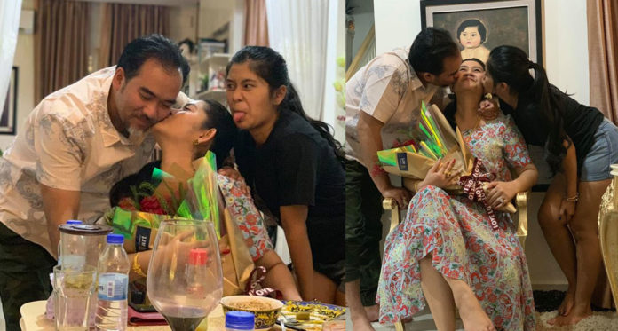 ស៊ឹម សូលិកា ឱបថើប អេង រិទ្ធី នៅចំពោះមុខកូនក្រមុំ