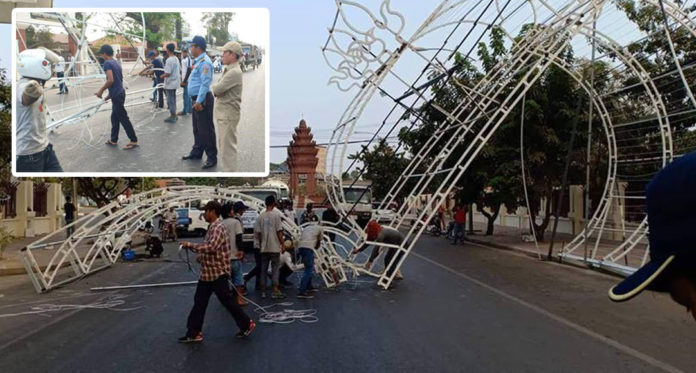 កាលពីម៉ោង៧ព្រឹក ថ្ងៃទី២៣ ខែកុម្ភៈ ឆ្នាំ២០១៨ មានករណីបាក់ខ្លោងទ្វារធំ សម្រាប់អបអរសាទរបុណ្យទន្លេ បណ្តាលឲ្យមនុស្ស៤នាក់បានរងបួស ហេតុការណ៍នេះបានកើតឡើងនៅចំណុចនៅមុខមន្ទីរពេទ្យបង្អែកខេត្ត ផ្សារលើ ក្រុងកំពង់ឆ្នាំង។