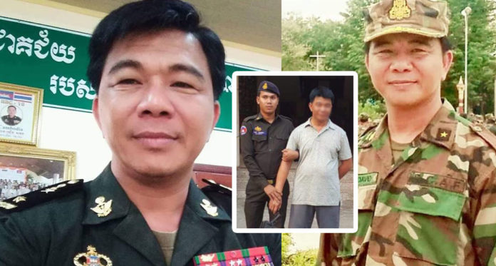 ភ្នំពេញ ៖ អតីតមន្ត្រីយោធាពាក់ផ្កាយ១ម្នាក់ នៅខេត្តសៀមរាប ត្រូវបានកម្លាំងអាវុធហត្ថចាប់ឃាត់ខ្លួន កាលពីល្ងាចថ្ងៃទី២៦ ខែមីនា ឆ្នាំ២០១៩ នៅចំណុចមាត់ស្ទឹងសៀមរាប ស្ថិតក្នុងភូមិមណ្ឌល២ សង្កាត់ស្វាយដង្គំ ក្រុងសៀមរាប ពាក់ព័ន្ធការប្រើប្រាស់ និងរក្សាទុក អាវុធខុសច្បាប់ដោយគ្មានលិខិតអនុញ្ញាត និងញុះញង់កុំឱ្យយោធិនស្តាប់បង្គាប់។