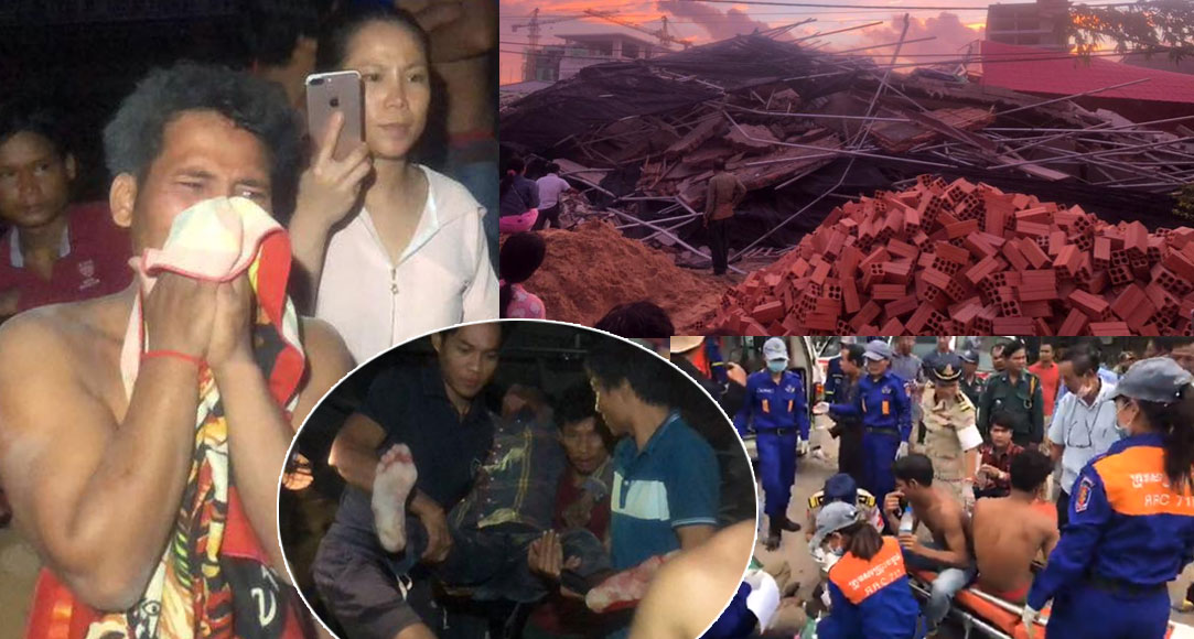 ខេត្តព្រះសីហនុ៖ អគារកម្ពស់៧ជាន់ ដែលកំពុងសាងសង់បានបាក់ស្រត់សង្កត់មនុស្សជាច្រើននាក់ បានស្លាប់ និងរងរបួស ខណៈដែលពេលនេះអាជ្ញាធរបាននឹងកំពុងញាប់ដៃញាប់ជើង យកអេស្កាវាទ័រមកកាយដើម្បីរុករកអ្នករងរបួសនិងស្លាប់ផ្សេងទៀត។
