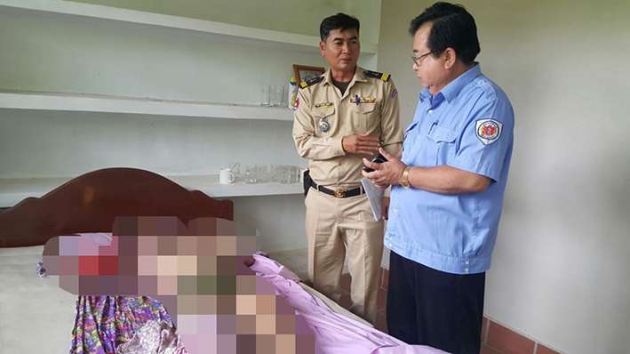 តាមសម្តីស្ត្រីឈ្មោះឆែម ចន្ថា ភេទស្រី អាយុ២៦ឆ្នាំ ជាបុគ្គលិកនៅមណ្ឌលមេត្តាករុណា បានឱ្យដឹងថា នៅមុនពេលកើតហេតុ កាលពីវេលាម៉ោង៧និង៥០នាទីព្រឹក ថ្ងៃទី០៨ ខែកក្កដា ឆ្នាំ២០១៩ លោកស្រីប្រធានអង្គការបានឱ្យនាងទៅសួរជនរងគ្រោះ ហេតុអ្វីមិនទាន់ក្រោកឡើងធ្វើការងារទៀត។ ពេលនោះនាងក៏ទៅដល់មុខបន្ទប់គាត់ឃើញទ្វារមុខចាក់សោរដាក់កន្លឹះខាងក្នុង ក៏ស្រែកហៅជនរងគ្រោះ តែមិនឆ្លើយ ទើបគោះទ្វាររបើក បន្ទាប់មកនាងបានបើកបង្អួចកញ្ចក់បើកវាំងននមើលពីខាងក្រៅ ក៏ប្រទះឃើញជនរងគ្រោះស្លាប់បាត់ទៅហើយ ទើបរាយការណ៍ប្រាប់សមត្ថកិច្ចចុះមកពិនិត្យតែម្តង។