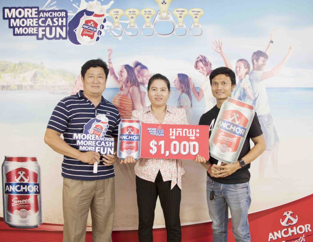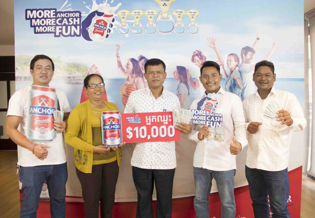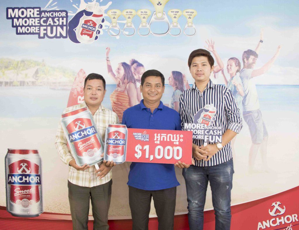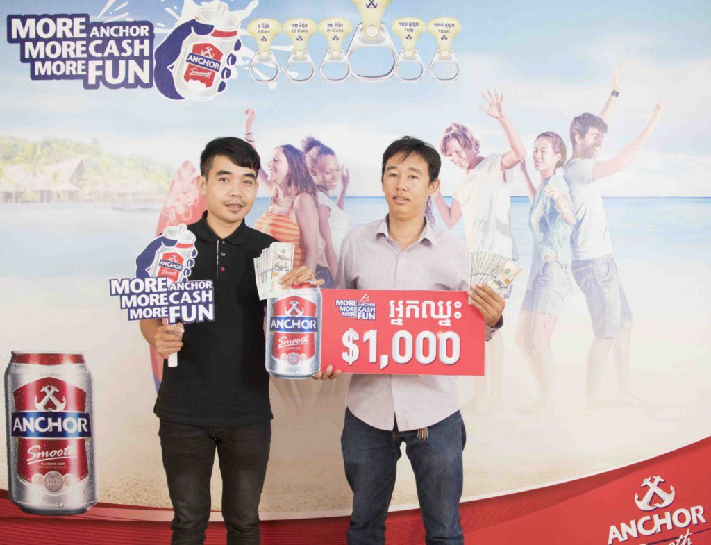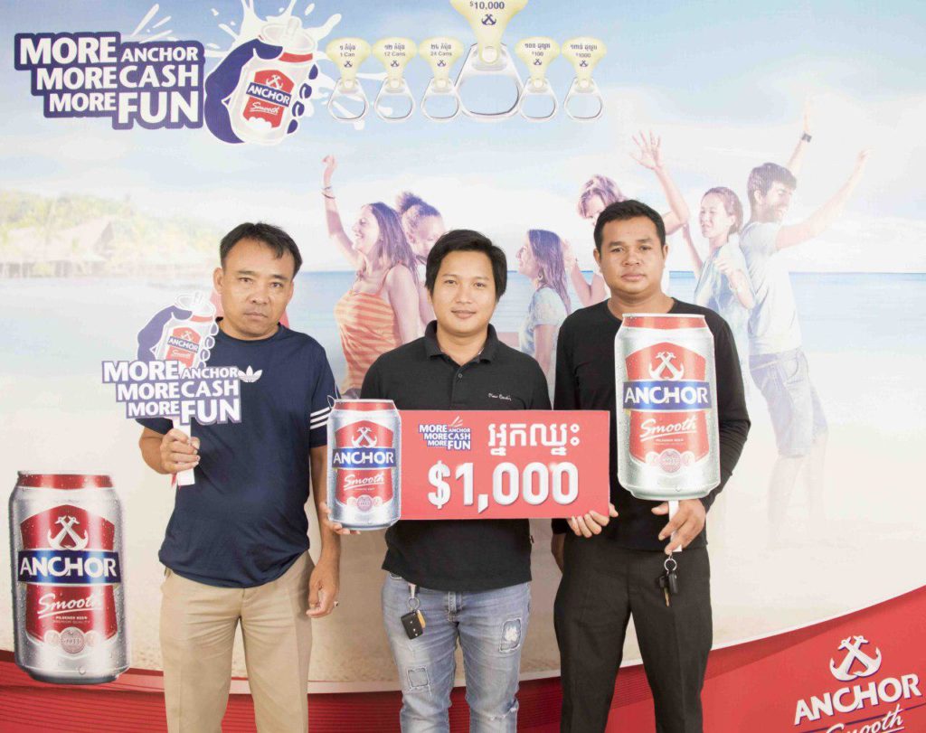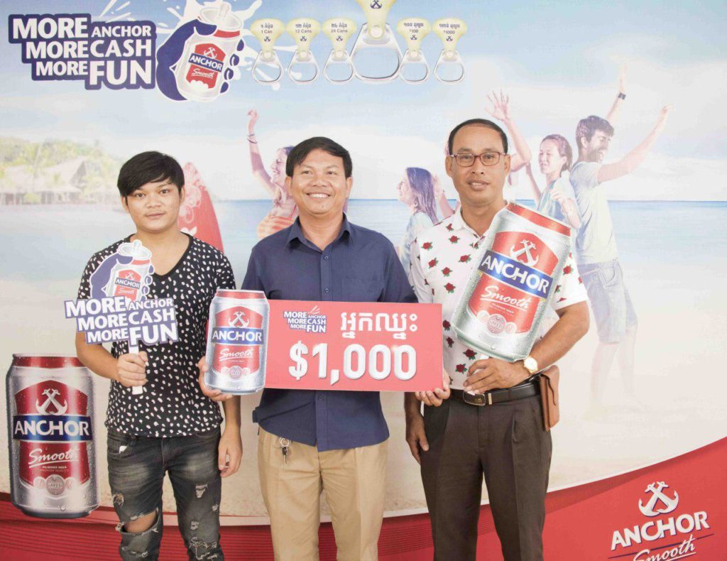 អ្នកឈ្នះរង្វាន់ទឹកប្រាក់១ម៉ឺនដុល្លារ ចំនួន៥រូប និងអ្នកឈ្នះរង្វាន់ទឹកប្រាក់១ពាន់ដុល្លារ ចំនួន៤៤រូប បានទទួលរង្វាន់ពីក្រុមការងារស្រាបៀរអាន់ឆ័រ។