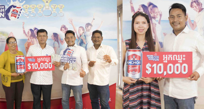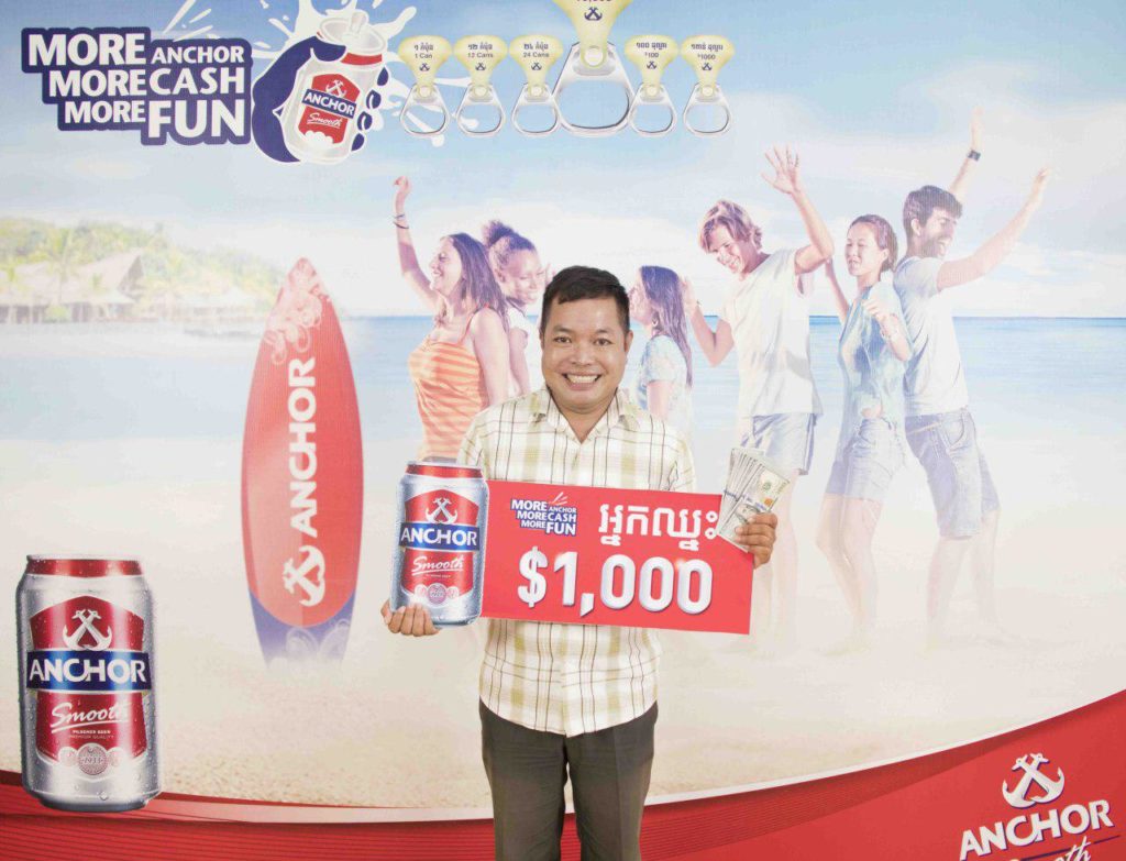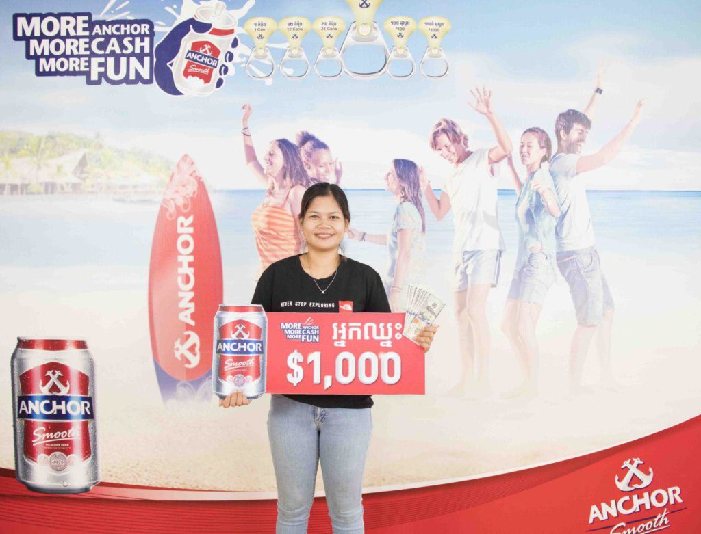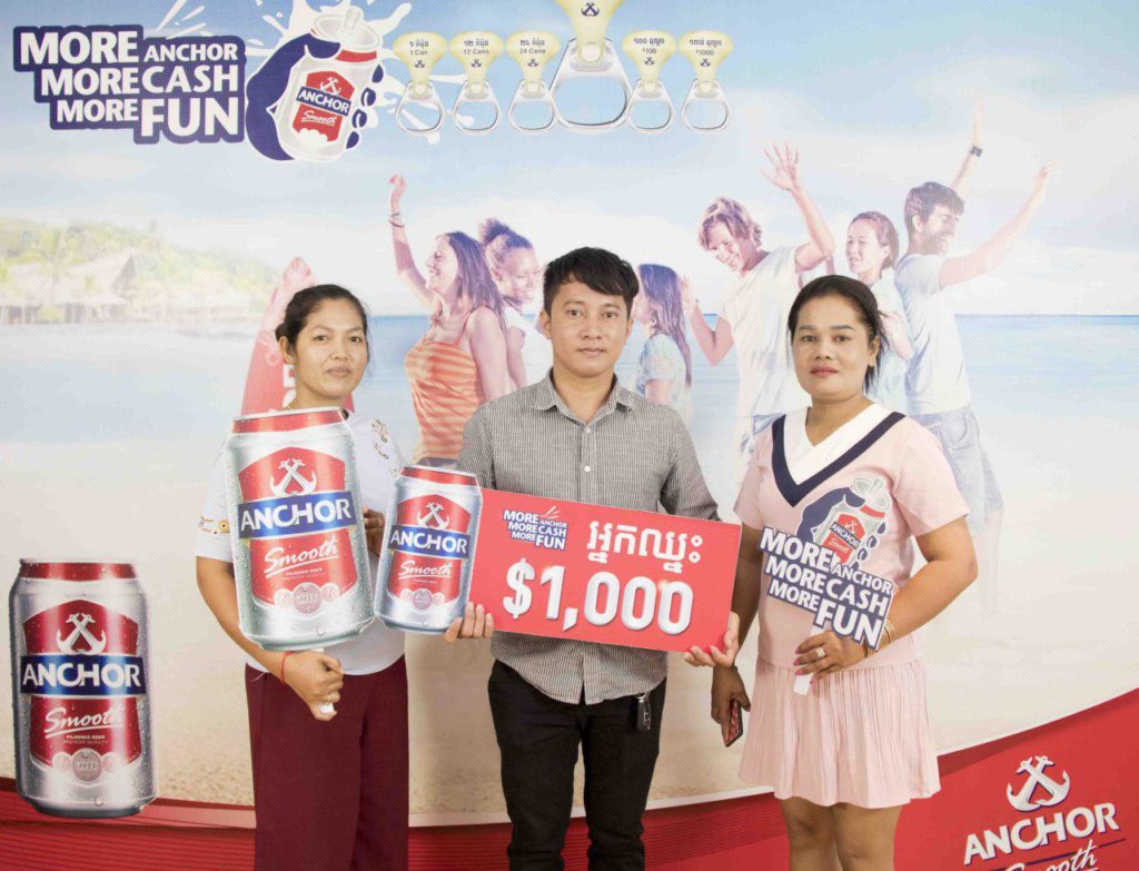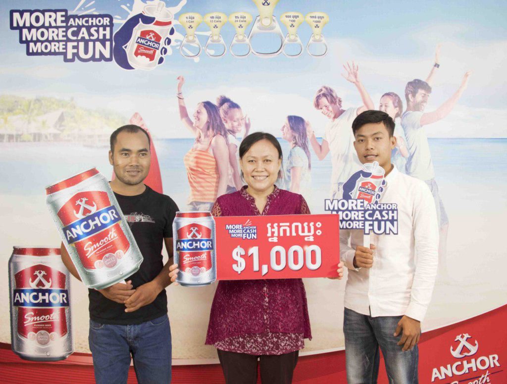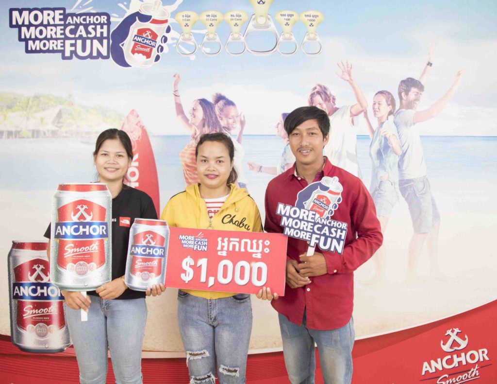 អ្នកឈ្នះរង្វាន់ទឹកប្រាក់១ម៉ឺនដុល្លារ ចំនួន៥រូប និងអ្នកឈ្នះរង្វាន់ទឹកប្រាក់១ពាន់ដុល្លារ ចំនួន៤៤រូប បានទទួលរង្វាន់ពីក្រុមការងារស្រាបៀរអាន់ឆ័រ។