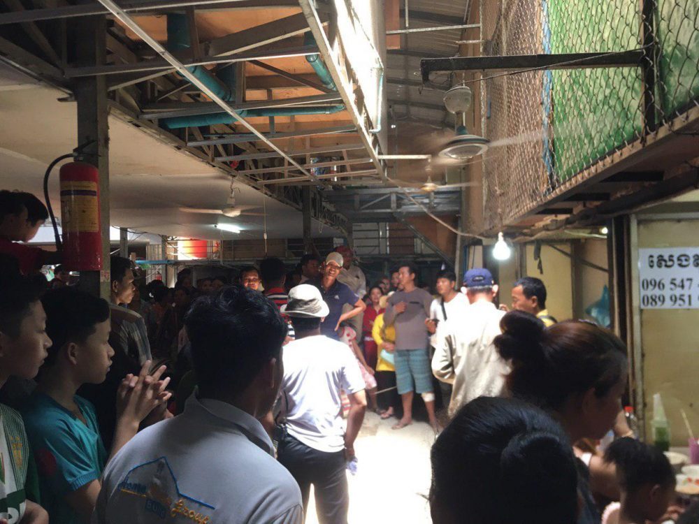 ស្ត្រីជាប្រពន្ធជនរងគ្រោះបន្តថា លុះបន្តិចក្រោយមកដោយសារបាត់មិនឃើញប្តីនៅជួយលក់ដូរគាត់ ទើបគាត់នឹកឆ្ងល់ លុះសម្លឹងមើលទៅលើជាន់ឡៅតឿ ស្រាប់តែប្រទះឃើញប្តីចងកបាត់ទៅហើយ ក៏ស្រែកឆោឡោផ្អើលអ្នកជិតខាងជួយឡើងទៅស្រាយចំណងដាក់ប្តីចុះមកក្រោម ក្រែងអាចសង្គ្រោះទាន់ពេល តែអកុសលប្តីរបស់គាត់បានស្លាប់បាត់ទៅហើយ ទើបរាយការណ៍ប្រាប់សមត្ថកិច្ចចុះមកជួយអន្តរាគមន៍។