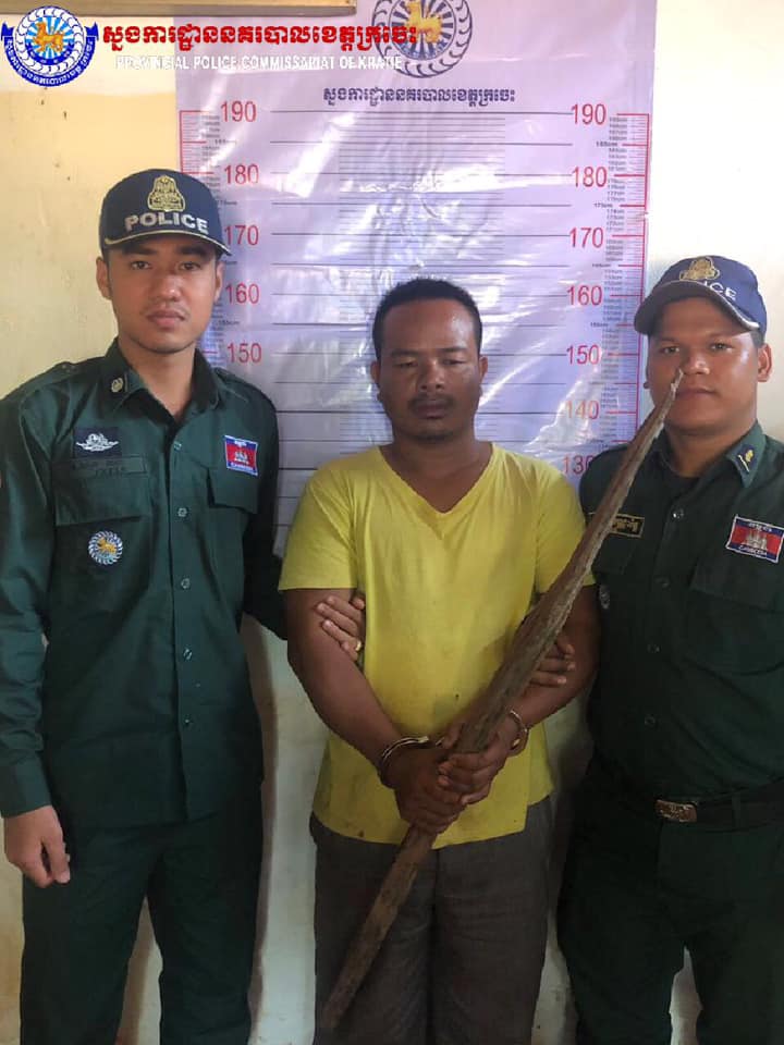 ខេត្តក្រចេះ ៖ បុរសជាជាងជួសជុលម៉ូតូម្នាក់បានកើតមានទំនាស់ពាក្យសម្តីជាមួយនឹងបុរសម្នាក់រស់នៅក្នុងភូមិជាមួយគ្នា លុះក្រោយមកខណៈដែលបុរសជាជាងម៉ូតូកំពុងអង្គុយជួសជុលម៉ូតូនៅតូបមុខផ្ទះរបស់ខ្លួន ក៏ស្រាប់តែត្រូវគូទំនាស់ទាញដំបងឈើជ្រុងដេញវាយ បង្កឱ្យមានការផ្អើលឆោឡោពេញភូមិ។ ហេតុការណ៍នេះបានកើតឡើង កាលពីថ្ងៃទី១៥ ខែកក្កដា ឆ្នាំ២០១៩ នៅចំណុចភូមិឃ្សឹមក្រៅ ឃុំឃ្សឹម ស្រុកស្នួល។