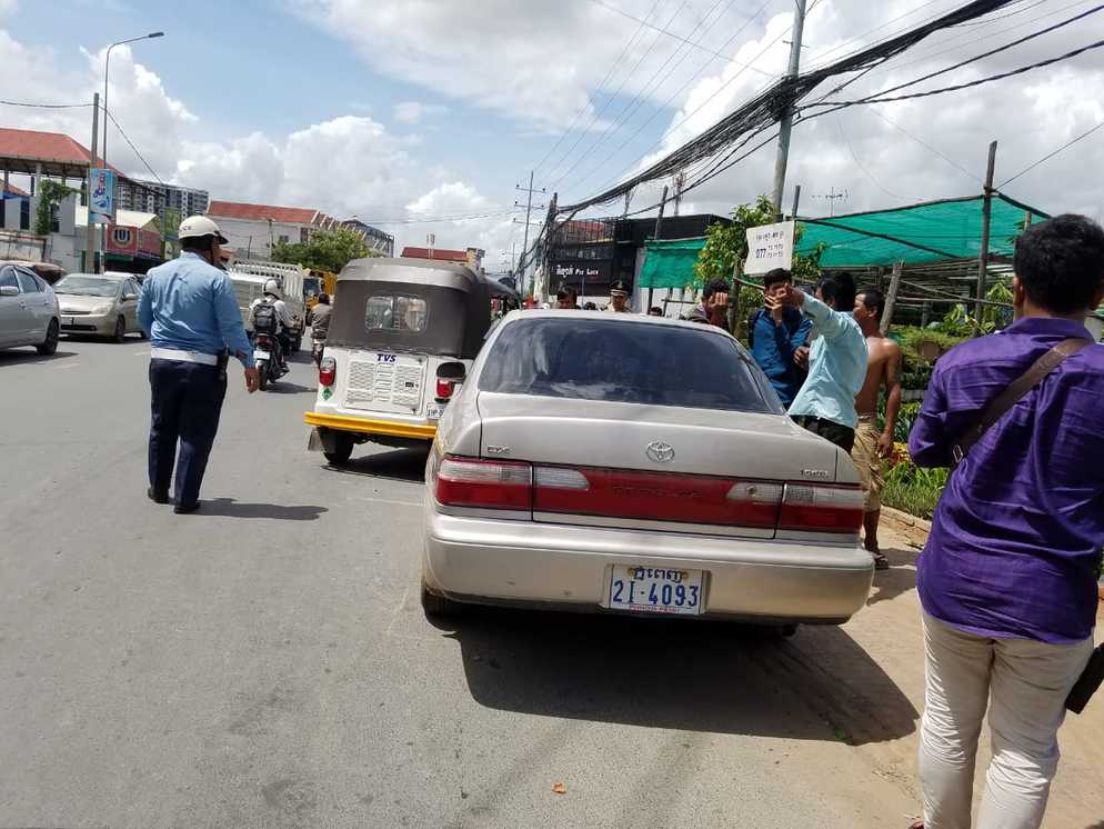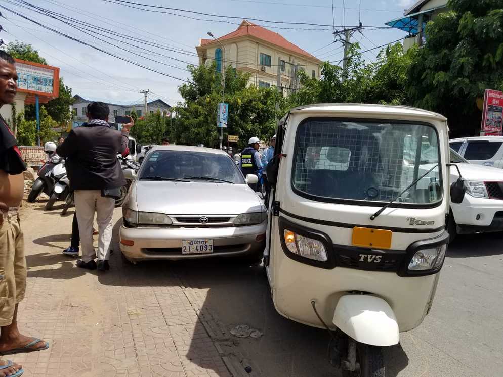ភ្នំពេញ ៖ រថយន្ត១គ្រឿងបានបើកទៅប៉ះជាមួយនឹងម៉ូតូកង់បី១គ្រឿង បណ្តាលឱ្យរងការខូចខាតតិចតួចដូចគ្នា ស្រាប់តែមិនព្រមដោះស្រាយគ្នាតាមសម្រួលដោយសន្តិវិធី ក៏ប្រឹងតែប្រកែកយកត្រូវរៀងខ្លួន រហូតផ្ទុះជាជម្លោះដេញវាយតប់គ្នាពេញផ្លូវ និងប្រទាញប្រទង់យកទូរស័ព្ទគ្នាទៅវិញទៅមក បង្កឱ្យការភ្ញាក់ផ្អើលដល់សមត្ថកិច្ចមូលដ្ឋាននិងបងប្អូនប្រជាពលរដ្ឋដែលនៅក្បែរទីតាំងកន្លែងកើតហេតុជួយអន្តរាគមន៍។