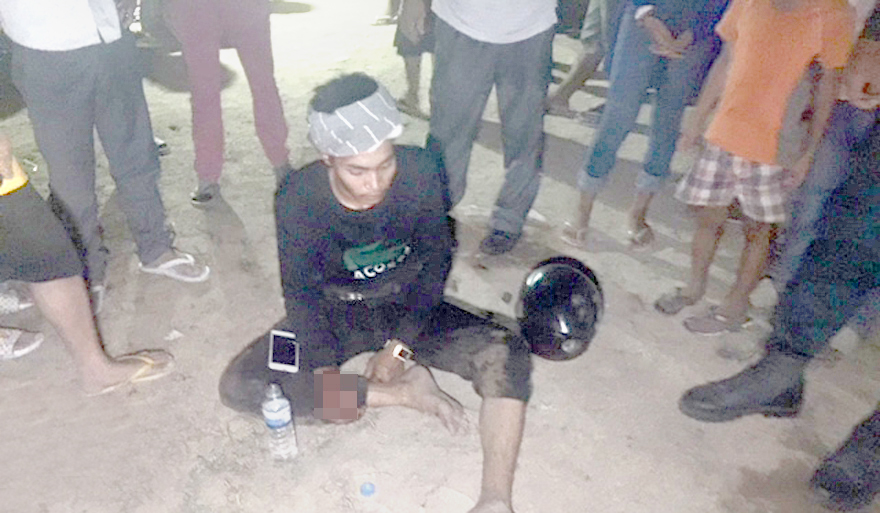 ស្រាប់តែរំពេចនោះក្រុមជនបង្កខាងលើបាននាំគ្នាដេញវាយជនរងគ្រោះទាំង២នាក់ភ័យរត់ចោលម៉ូតូ ហើយភាគីខាងក្រុមជនបង្កដេញកាប់ជនរងគ្រោះជាច្រើនកាំបិត ទោះបីជាជនរងគ្រោះភ័យរត់ធ្លាក់ទឹកក៏ដោយ ក៏ភាគីក្រុមជនបង្កនៅតែនាំគ្នាដេញកាប់ដល់ក្នុងទឹកទៀត បណ្តាលឱ្យជនរងគ្រោះរងរបួសធ្ងន់ម្នាក់ និងម្នាក់ទៀតរងរបួសស្រាលដោយសាររត់រួច ចំណែកម៉ូតូរបស់ជនរងគ្រោះត្រូវភាគីខាងជនបង្កនាំគ្នាវាយកម្ទេចបណ្តាលឱ្យរងការខូចខាតយ៉ាងធ្ងន់ធ្ងរ ហើយភាគីក្រុមជនបង្កនាំគ្នារត់គេចខ្លួនបាត់អស់។