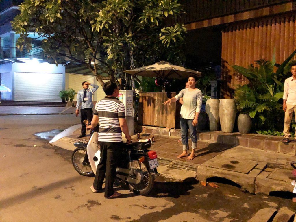 ដោយឃើញស្រែកឡូឡារំខានខ្លាំងពេក ទើបក្រុមសន្តិសុខដែលយាមនៅជិតនោះបានដើរទៅមើល និងជួយឃាត់កុំឱ្យរំខានដល់ការសម្រាករបស់អ្នកដទៃនិងបានសួរនាំភាគីទាំងសងខាង រួចរាយការណ៍ប្រាប់សមត្ថកិច្ចមូលដ្ឋានចុះមកជួយអន្តរាគមន៍ភ្លាមៗ។