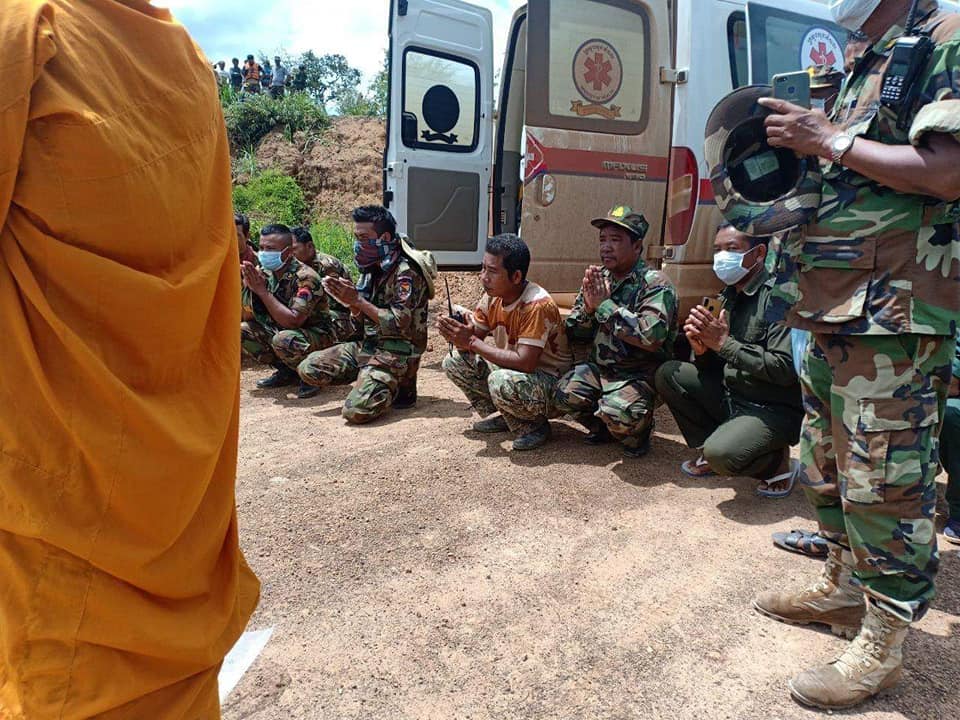 ស្ទឹងត្រែង៖ បន្ទាប់ពីចំណាយពេលជាច្រើនម៉ោងដើម្បីស្វែងរកសាកសពទាហាន២នាក់ ដែលបានធ្លាក់ចូលទឹកអូរ នៅព្រឹកមិញនេះ សាកសពអ្នកទាំង២ត្រូវបានរកឃើញស្រង់ឡើងលើគោកហើយ ដោយមានធ្វើកិច្ចតាមបែបសាសនាយ៉ាងត្រឹមត្រូវ និងមានការគរពវិញ្ញាណក្ខន្ធរបស់មិត្តភក្តិរួមអាវុធទៀតផង។