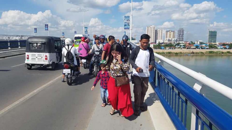 តាមប្រភពពីសមត្ថកិច្ចមូលដ្ឋានបានឱ្យដឹងថា នៅមុនពេលកើតហេតុគេឃើញស្ត្រីខាងលើ រួមនឹងកូនតូចខាងលើ ជិះម៉ូតូកង់បីមកឈប់នៅកំពែងខាងលិច (លើស្ពានជ្រោយចង្វា) លុះមកដល់កន្លែងកើតហេតុក៏បានចុះពីលើម៉ូតូ កង់បីអង្គុយនៅលើកំពែងនោះដោយមានការសង្ស័យ គាត់ក៏បានប្រាប់ឱ្យស្រីនោះចុះទៅក្រោមវិញ ព្រោះខ្លាចមានបញ្ហា ស្រាប់តែនាងក៏បានទៅអង្គុយលើស្ពានម្តង ទើបបង្កឱ្យមានការភ្ញាក់ផ្អើលតែម្តង តែយ៉ាងណាមើលទៅសភាពរបស់នាងក៏មិនដាច់ចិត្តលោតទឹកសម្លាប់ខ្លួនដែរ។