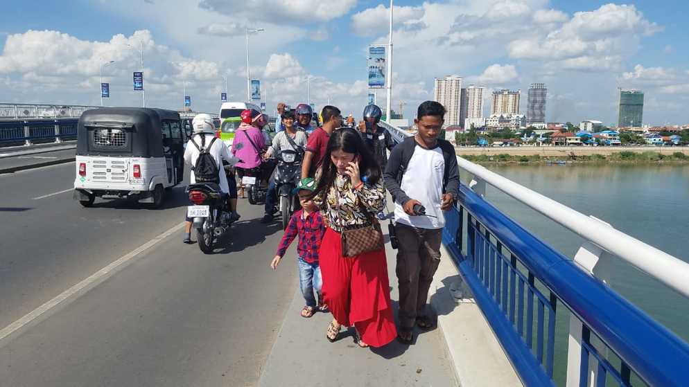 ភ្នំពេញ ៖ ស្ត្រីម្នាក់ព្រោះតែតូចចិត្តនឹងប្តីធ្វើបាបចិត្តលួចលាក់មានស្រីរាប់មិនអស់ ក៏បានដឹកដៃកូនប្រុសតូចអាយុប្រមាណ៤-៥ឆ្នាំម្នាក់ធ្វើដំណើរឡើងមកលើស្ពានជ្រោយចង្វា បំណងលោតទឹកសម្លាប់ ប៉ុន្តែដោយសារតែមិនដាច់ចិត្ត ទើបអង្គុយយំនៅកណ្តាលស្ពានជ្រោយចង្វា ធ្វើឱ្យប្រជាពលរដ្ឋអ្នកដំណើរឆ្លងកាត់ប្រទះឃើញឈប់សួរនាំនិងរាយការណ៍ប្រាប់សមត្ថកិច្ចចុះអន្តរាគមន៍ទាន់ពេលវេលា។